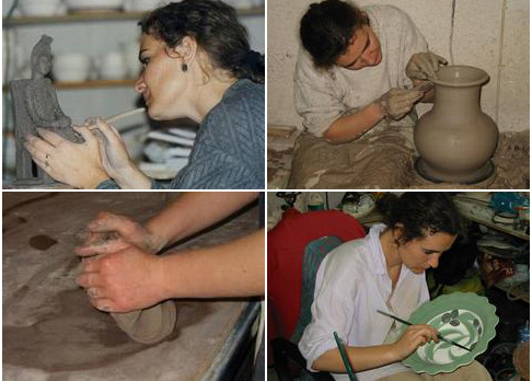 Dans son atelier, vous pouvez voir tout le processus de fabrication de la céramique: préparation de l’argile, moulin à carlin, malaxage à la main, lancer de roues, peinture, glaçage et cuisson.