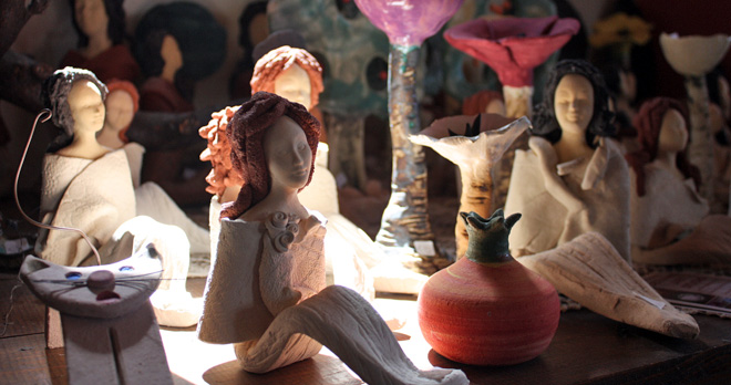 Au premier étage, vous trouverez des céramiques principalement pour la décoration (personnages en céramique, poupées, fleurs, assiettes murales, créations en bois-céramique, etc.). Dionysia est membre de l’Association panhellénique de céramistes et potiers. Elle a participé à des expositions à Zakynthos et à Athènes et depuis 2001, elle a une exposition permanente dans son atelier.